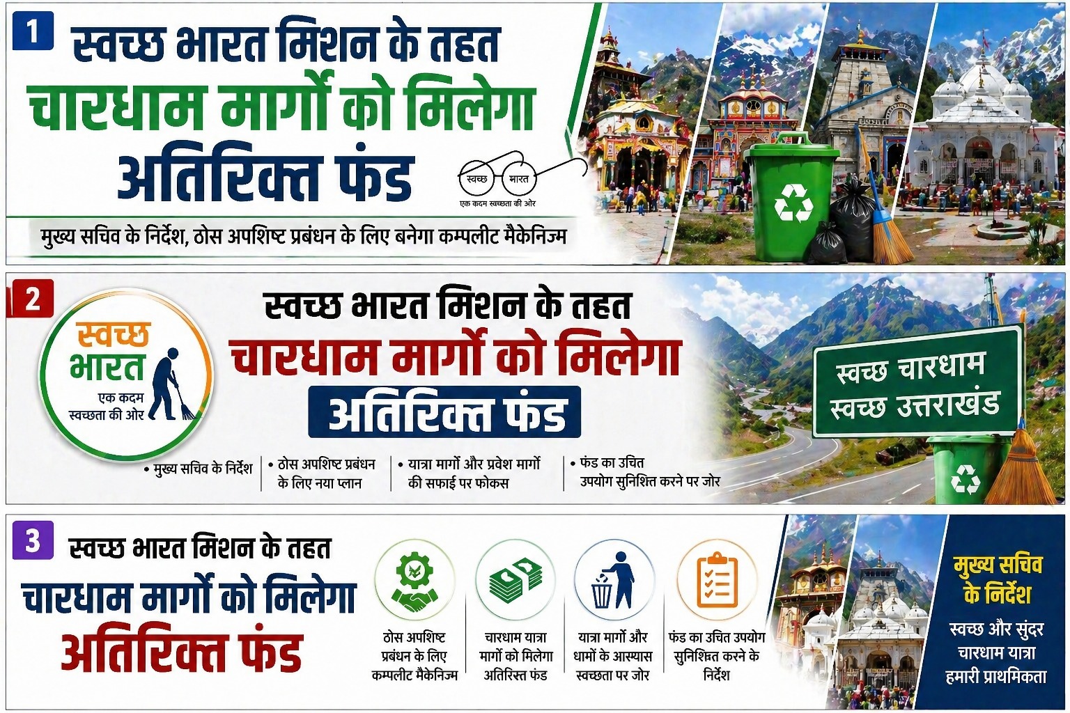 मुख्य सचिव ने प्रदेश में ठोस अपशिष्ट प्रबंधन के लिए कम्पलीट मैकेनिज्म तैयार किए जाने के निर्देश दिए हैं। इसके लिए शीघ्र कार्ययोजना प्रस्तुत किए जाने के निर्देश दिए। इसके साथ ही, उन्होंने स्वच्छ भारत मिशन के तहत अधिकारियों को चारधाम यात्रा मार्गों एवं जनपदों के प्रवेश मार्गों पर ठोस अपशिष्ट के निस्तारण के लिए अतिरिक्त फंड्स उपलब्ध कराये जाने के निर्देश दिए हैं। उन्होंने चारधाम यात्रा मार्गों एवं चारों धामों के आसपास स्वच्छता बनाए रखने के लिए जिलाधिकारियों को निर्देश दिए हैं। उन्होंने इस अतिरिक्त फण्ड का उचित उपयोग किए जाने की बात कही।