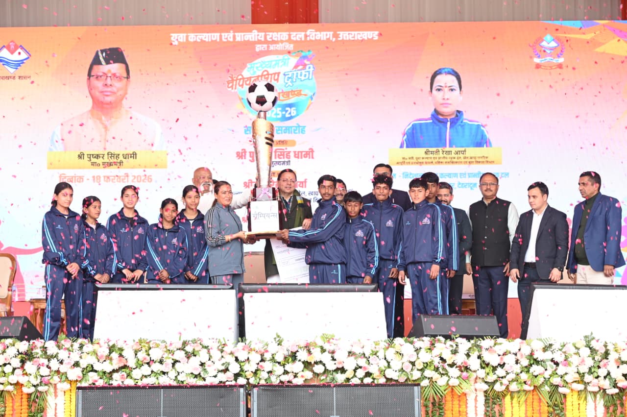 मुख्यमंत्री पुष्कर सिंह धामी ने बुधवार को ननूरखेड़ा, देहरादून में मुख्यमंत्री चैम्पियनशिप ट्रॉफी 2025-26 के समापन समारोह में प्रतिभाग किया। इस अवसर पर मुख्यमंत्री ने देहरादून जनपद को विजेता ट्रॉफी एवं 05 लाख रुपये का चेक प्रदान किया।