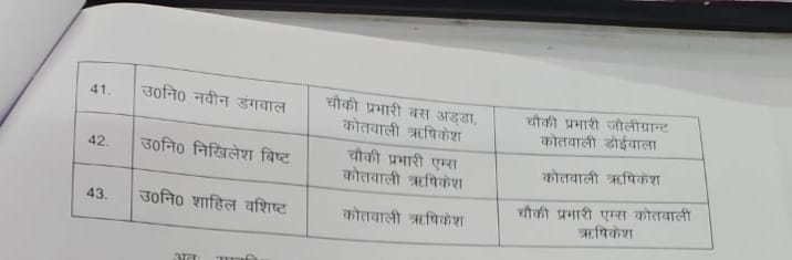 *दिनांक 5/10/2025 को वरिष्ठ पुलिस अधीक्षक देहरादून द्वारा निम्न निरीक्षकों/उप निरीक्षकों के स्थानांतरण उनके नाम के सम्मुख अंकित स्थानों पर किये गए।*