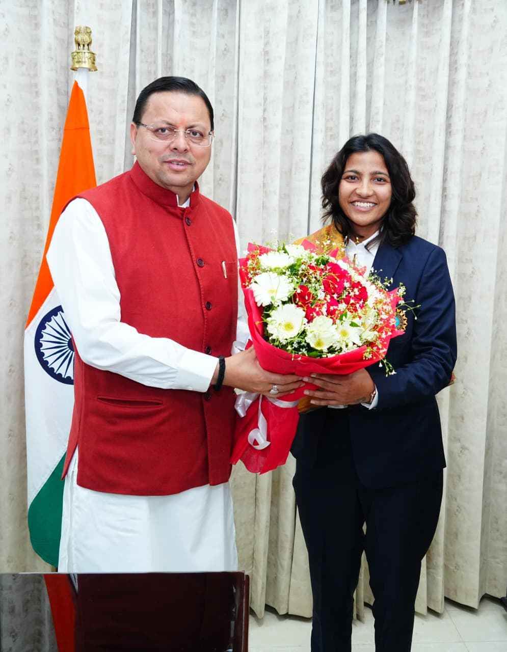 महिला विश्व कप विजेता क्रिकेटर स्नेह राणा ने की मुख्यमंत्री पुष्कर सिंह धामी से शिष्टाचार भेंट